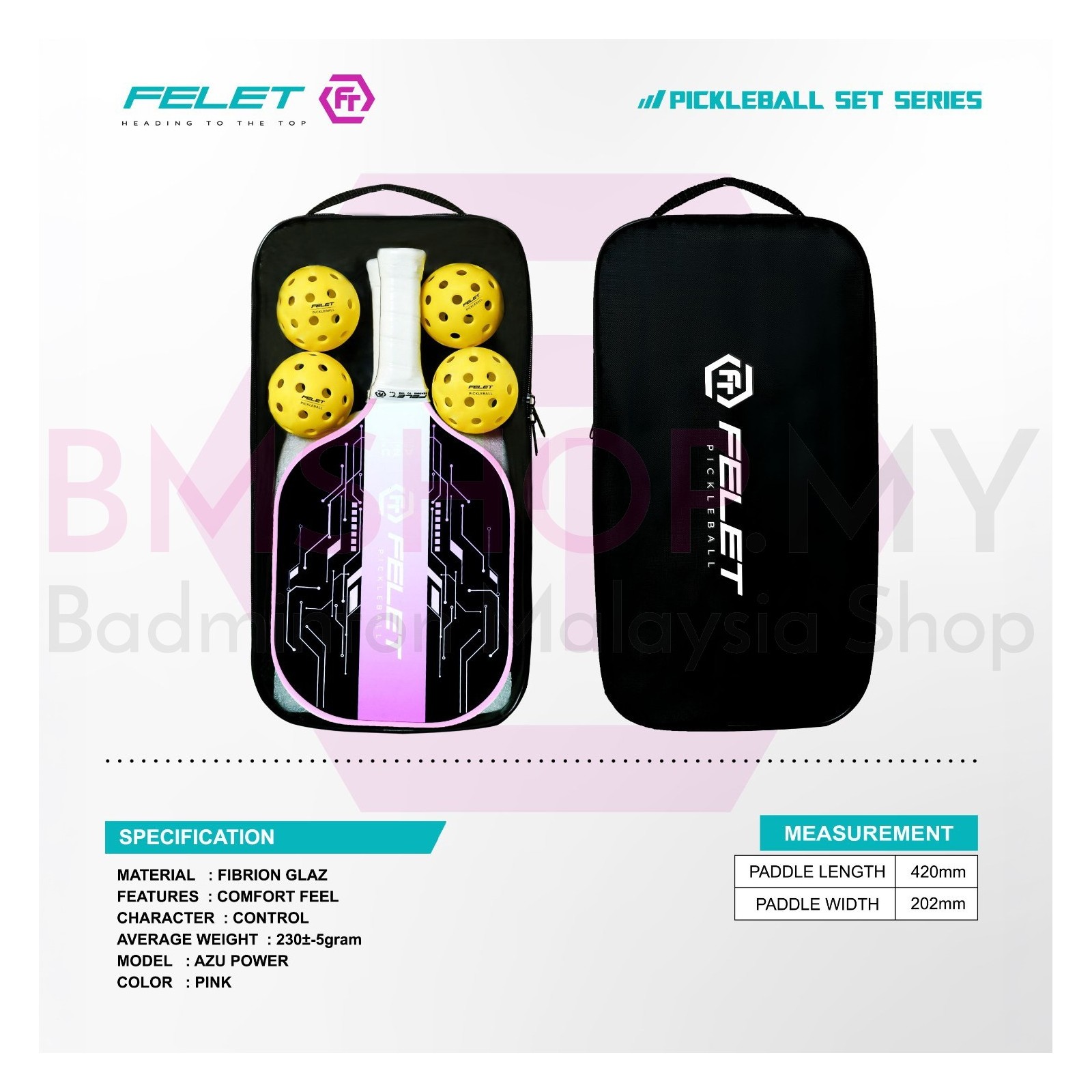 FELET Pickleball Azu Power Paddle Set (Free cover+4 pickleball+ 2 paddle)